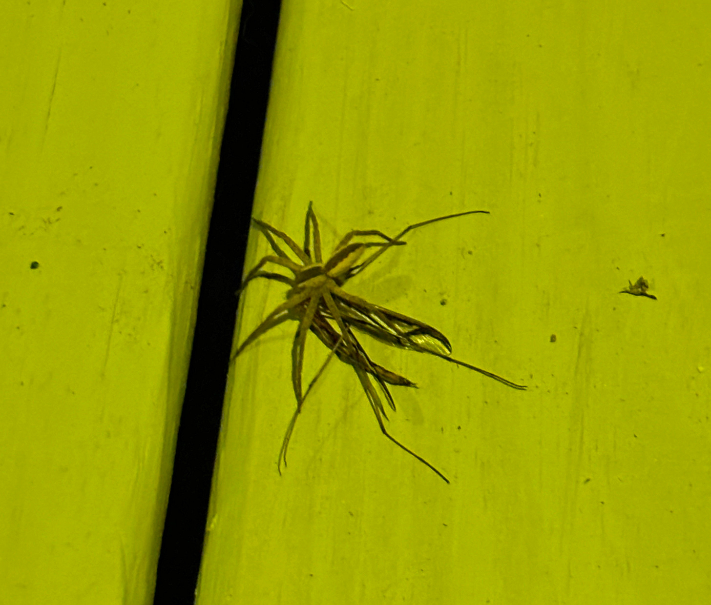If I am thrice-exalted, then you’re Tat, and if you’d open your eyes instead of your mouth, you will see twinkling lights among the blades; those are the reflective eyes of spiders. Wolf spiders, to be specific. Other spiders will come out at dusk to weave their webs in the moonlight, but they also love artificial lights, as such are irresistible to flying insects. You sleep at night, but there is an entire world that wakes then.